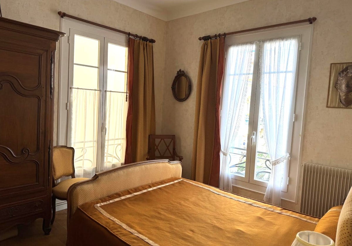 - à l'entre sol: une petite cuisine, une chambre, une salle de bains avec WC, une cave.